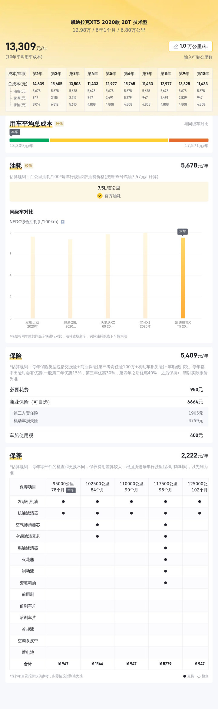 购买二手车不仅要考虑购车成本,还要考虑日常使用成本。我们对这款车的保险费用、保养费用以及油耗等日常使用成本进行了统计和分析,以便让您更加全面地了解这款车的使用成本。
