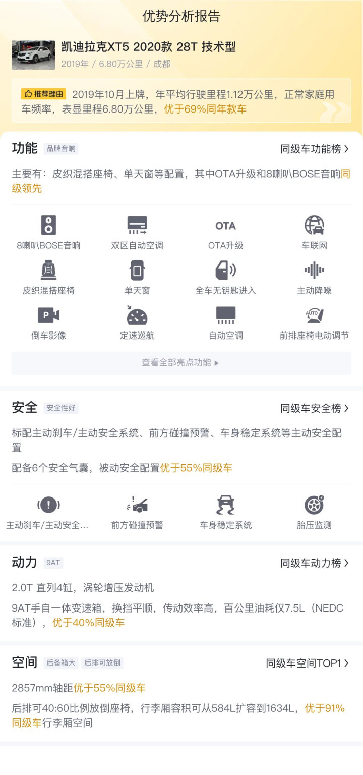 这款凯迪拉克XT5 2020款 28T 技术型在安全配置、动力性能等方面均表现出色。下面,我们将通过与同级车型的对比,让您更加直观地感受这款车的整体表现。